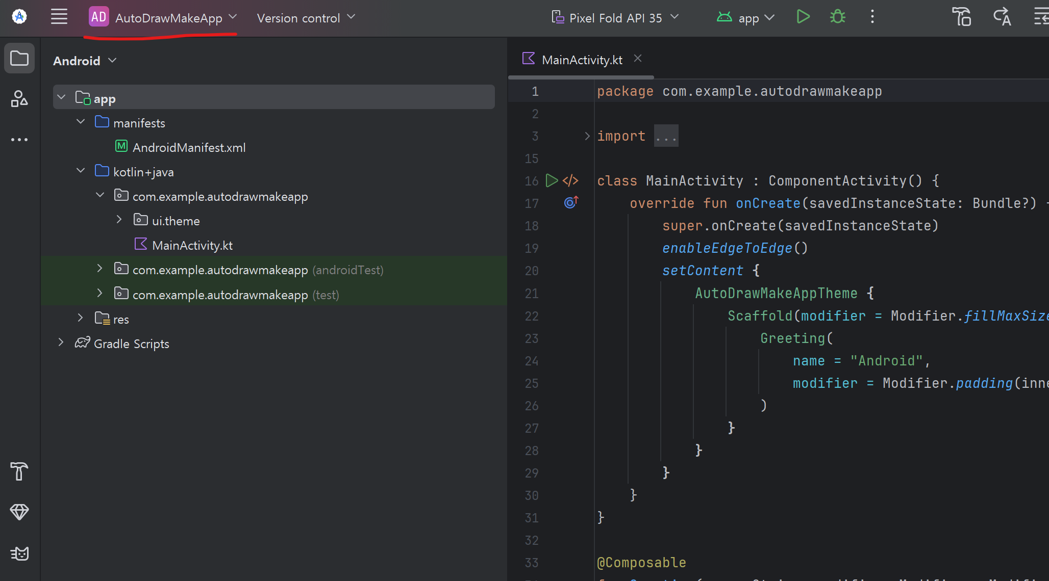 프로젝트명을 AutoDrawMaekApp 이라고 바꿔줌