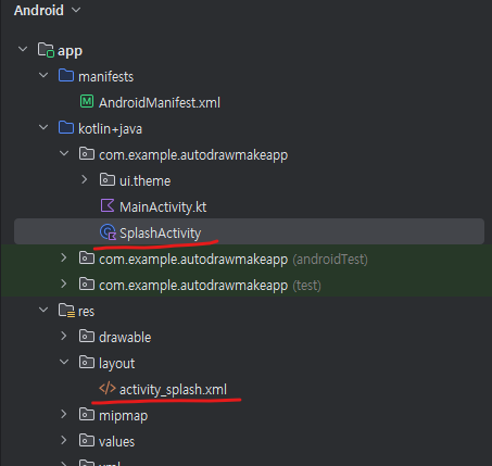 activity_splash.xml은 화면 layout 설정인 것 같음
